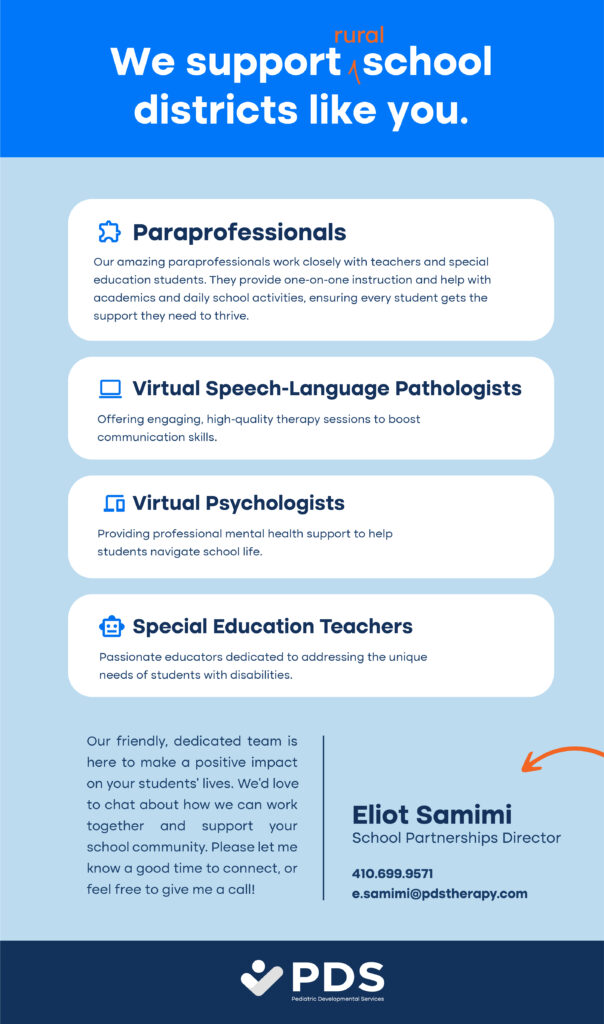 - Consistent, High-Quality Services: PDS ensures reliable coverage and continuity of care so students receive the support they need without service interruptions.